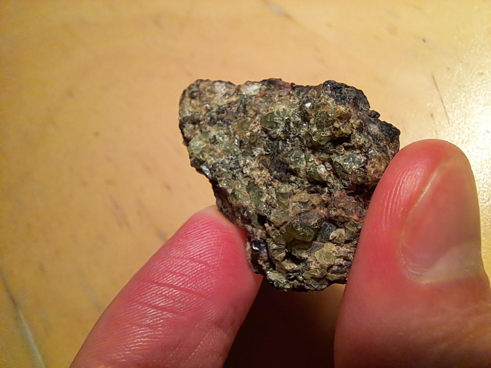 >>3160371Hmmmm…seeing it's on a dark black matrix makes me want to swing back towards olivine or garnets since that's very likely basalt, but at the same time the green feels too pale for that.