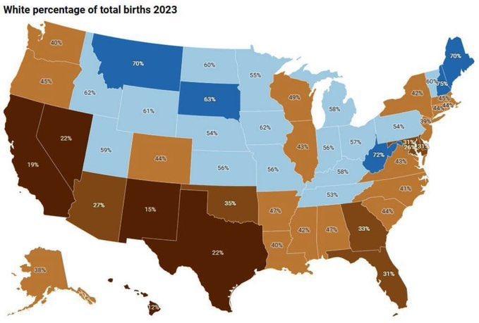 >>3171629The worst State (California) rose from 19% White Births to 27%.