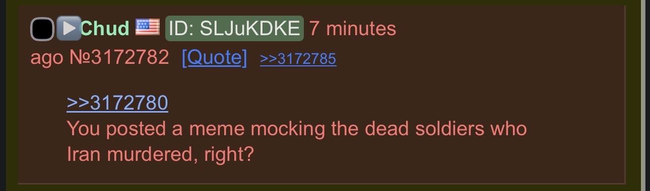 >>3172792 (OP)i will, contrary to my own political principles and logic, laugh whenever soldiers of a larger military force die at the hands of a smaller military force or insurgent force. i support the taliban, IRA, viet cong, ukraine, and iran. the only thing that would sway me from this default position, would be if the people being attacked by the larger force were niggers