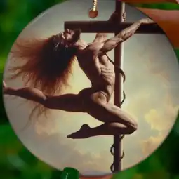 As the music blares, the stage is revealed: a makeshift pole surrounded by cheering Kekistanti soldiers. In the center of it all, there stands Jesus, clad in red heels, lipstick smudged across his face, his tongue teasingly out. He grabs the pole with mock reverence and begins to spin, his every move a mix of grotesque mockery and absurd flair.