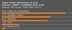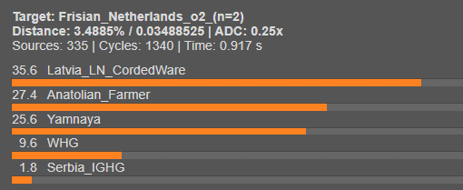 Only that one mixed Ulster + Scottish sample comes close with like 53.6% Steppe corded ware ancestry but the sample size for that is n=2 so it could very well be an outlier, the most steppe ancestry I've ever seen is someone in Frisia who had ~60% Corded ware or ~50% Corded ware and 10% Yamnaya