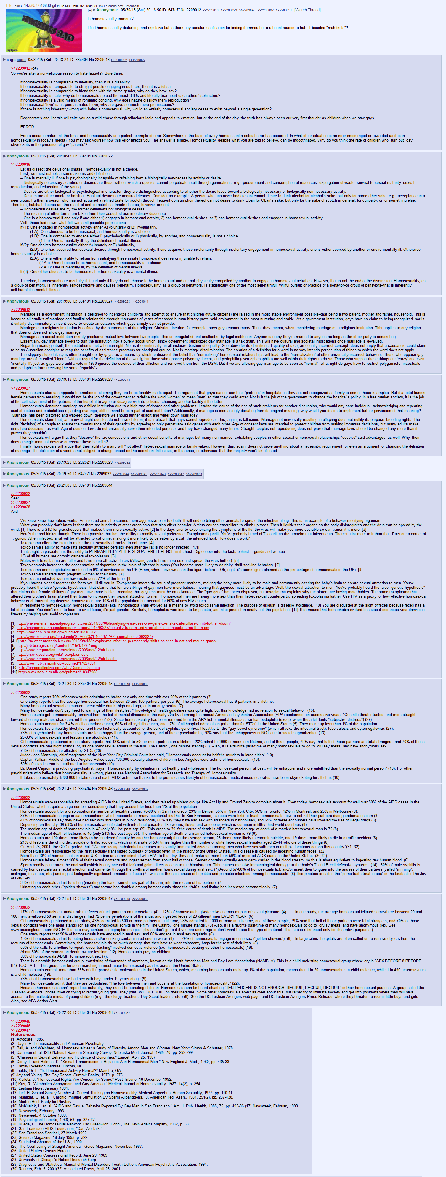 >>3182439It is literally impossible to be genetic, because it self selects out of the gene pool, because it is behavior that does not reproduce.