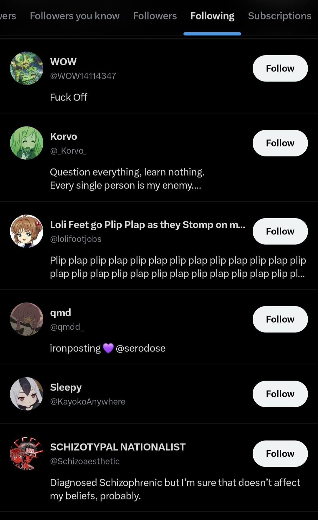 >>3192883i follow a lot of people (3k) follows dont = endorsements I follow people to keep tabs on them so I dont have to screenshot their account, and this is a singular account lol