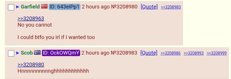 >>3210767Seems to me like you are always just fighting with someone and never doing anything else. Not good.