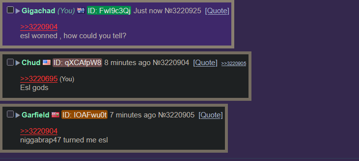 >>3220904esl wonned , how could you tell?