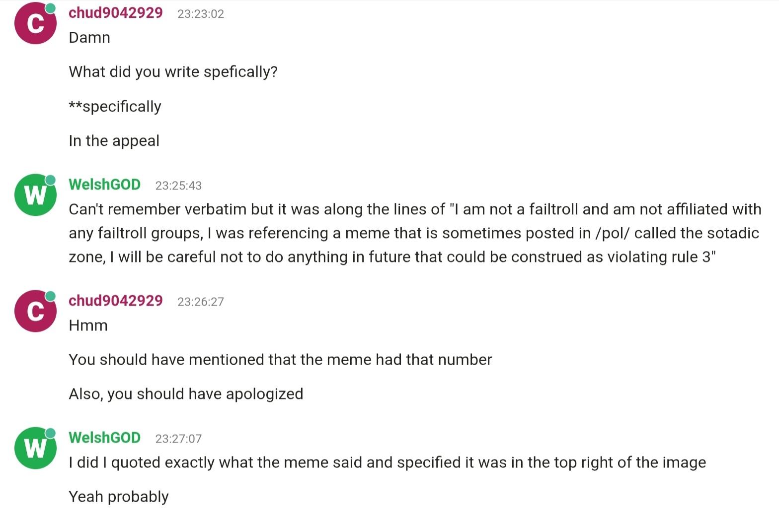 Look at the screenshot of Gold's ban. If i was quote i wouldnt unban him tbh