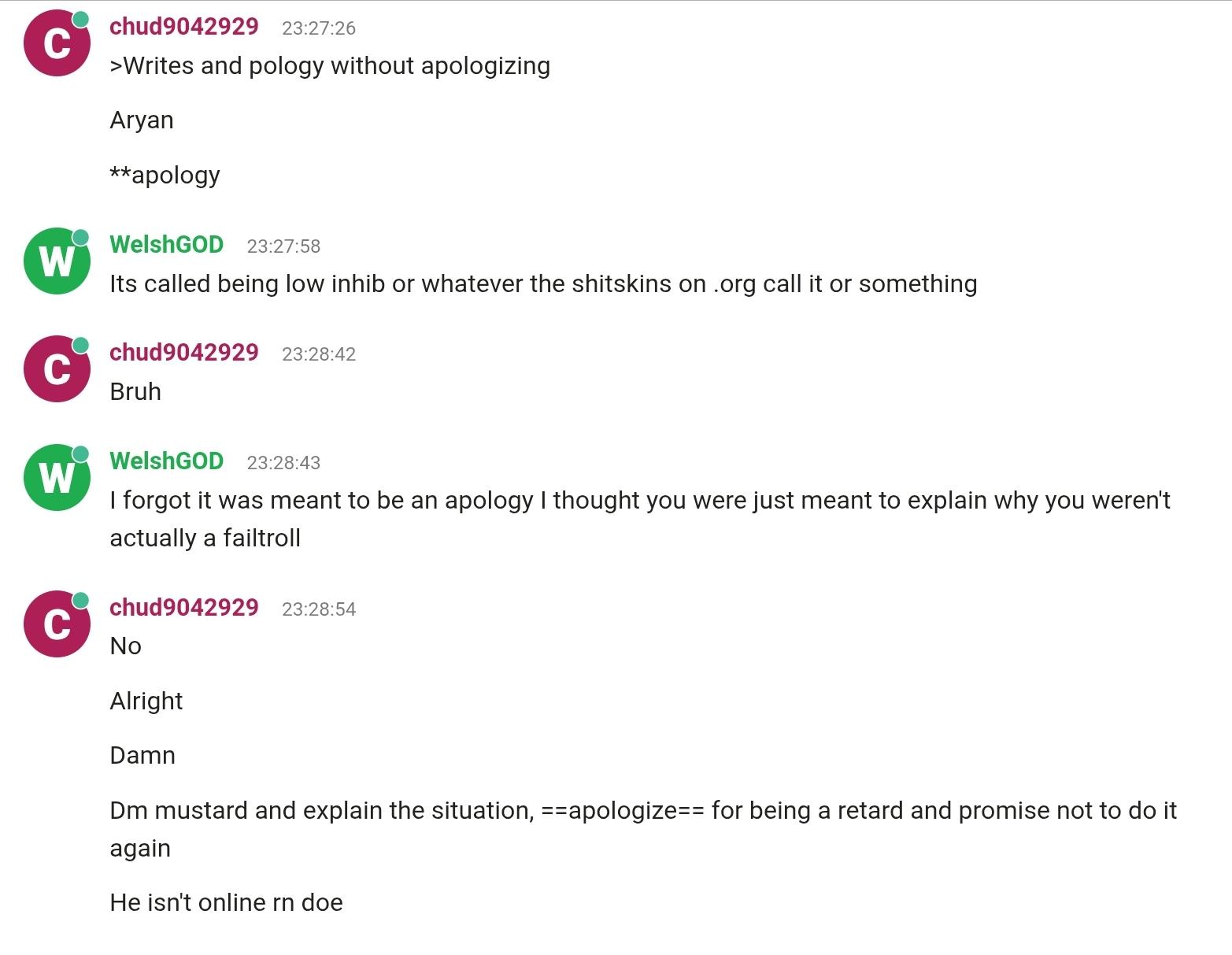 >>3224720His cordtroon friend also mentioned him being racist in public and he called a 1/4th jewish girl a kike for saying she was british (giga o olgol).