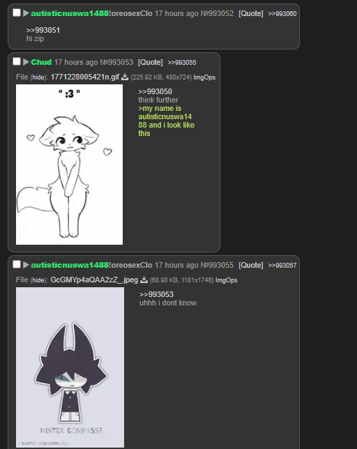 >>3229509>oldfagHe found the site like 6 months ago