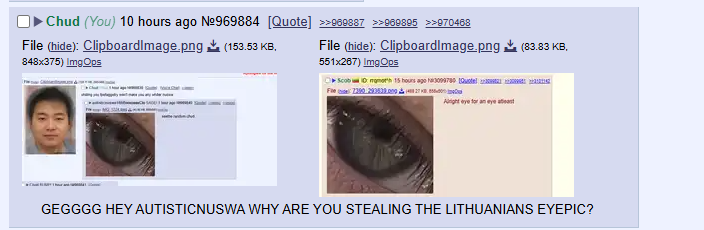 >>3228467>>3228468He posted lithuaryans eye and claimed it was his, he didn't like being called out