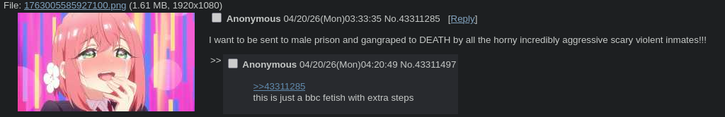 Generic Namefag lPbt9a5t 04/20/26 (Mon) 13:58:23 â„–3251987[Quote]