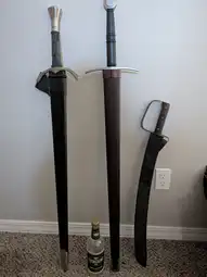 >>3257427Dey are real swords, 2 of which are live blade competition swords. One is a Chinesium, but actually pretty good, though, heavy sword.