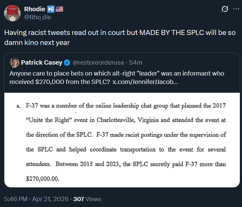 >>3261655No. One of the organizers was paid by the SPLC though