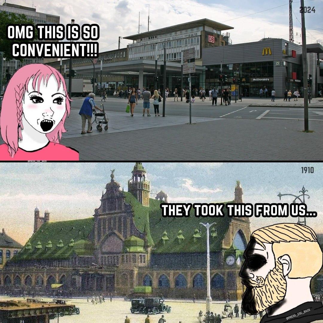 Then, somewhere along the line, we decided that cheap convenience was the only metric that mattered. We allowed breathtaking architectural heritage to be bulldozed, bombed, or paved over, only to replace it with sterile, hyper-utilitarian boxes dominated by corporate fast-food logos.