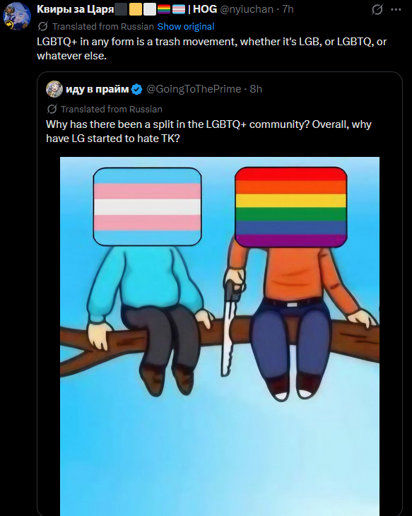 The nickname says "Queers for the Tsar" btw