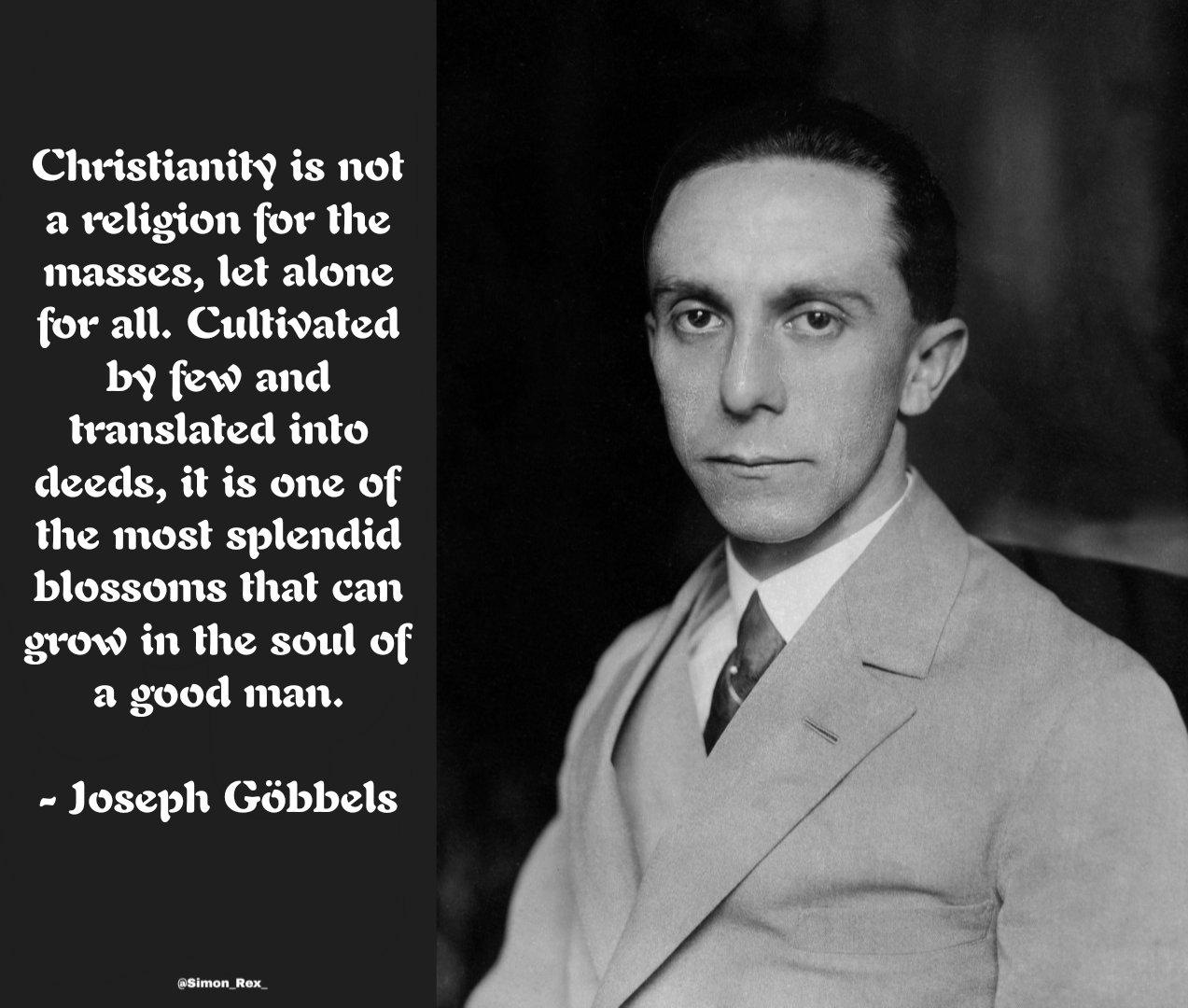 >"This war was a religious war… A war between light and darkness, truth and lies, Christ and Antichrist."before hitler joined, which goebbels himself would repeat in the 1940's during the war against the USSR