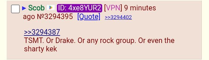 >TSMT. Or Drake. Or any rock group. Or even the sharty kek