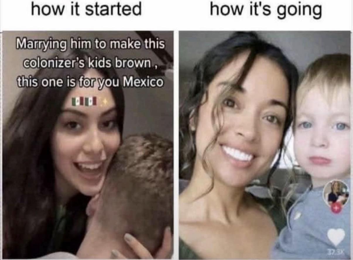but the baby will end up being white, and you technically just colonized him by removing the aztec genes or whatever