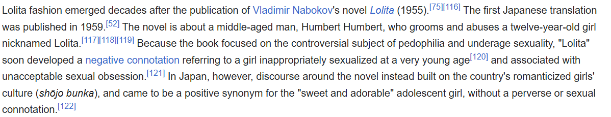 >>3304652assuming the best and assuming you're not a peedough and you only like the fashion, you should stop liking it because its peedough coded because its meant to look childish and its literally named after some pedophile fantasy book