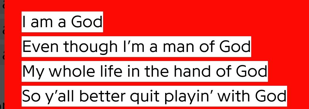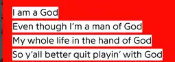 >>881518YEEZUS WAS A GOOD ALBUM EXCEPT I AM A GOD THAT WAS BLASPHEMOUS I DO NOT TAKE BLASPHEMY LYING DOWN
