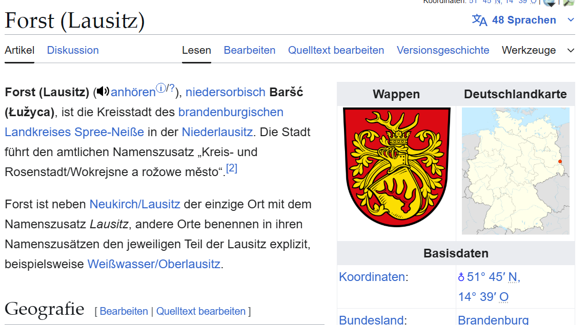 Sacro, niedersorbisch Zakrjow (früher auch Krje),[3] ist ein Ortsteil der Kreisstadt Forst (Lausitz) im Landkreis Spree-Neiße in Brandenburg. Der Ort wurde am 1. April 1946 eingemeindet und erhielt am 26. Oktober 2003 Ortsteilstatus.[4] Sacro liegt im amtlichen Siedlungsgebiet der Sorben/Wenden.