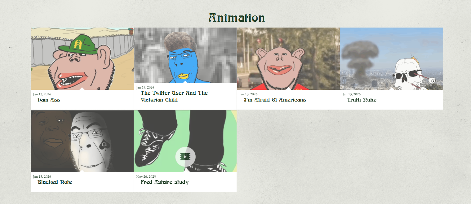 I'm sitting on a lot of unfinished animations! The problem is I go too ambitious with them. For my new animations I'm going to take cues from my soyjak animations and go more minimalist so I can actually do longer ones.