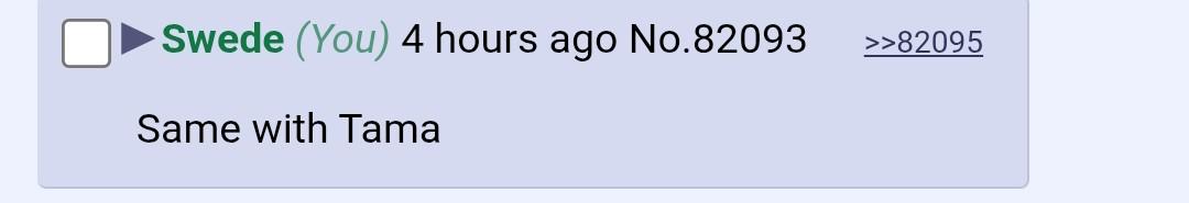 fuck all of you cucks tama is my wife only she is literally sucking my dick below my desk as im typing this