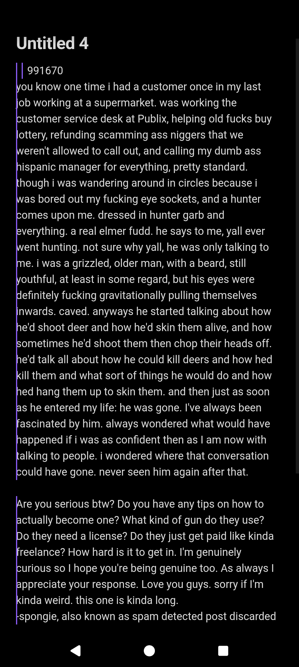 >The first thing that comes to mind is invincible WHICH I CANNOT FUCKING STAND. also wait maybe that comic with the plutonian guy is pretty cool too, forgot what that one is called. irredeemable? a lot of them start with in-ir or something. Maybe I should make indestrucible? It's about me, no super powers required, just my daily life, because that's just how tuff I am. I work at a bank and I deal with old people, I guess that makes me pretty indestructible if you ask me, they can be really demanding. Like earlier I had an old rich lady (i deal with old rich people a lot) complaining about a 5 dollar fee with a foreign currency exchange transaction. Like nigger! Where do you think we get currency from, the spaghetti monster from the sky? XDDDD HOLY OLDNIGGER REFERENCE. And I'm strong bad. Ok but seriously who cares about anything I'm saying here. Oh wait I'm kinda rambling again, let me loop back to what you said.
