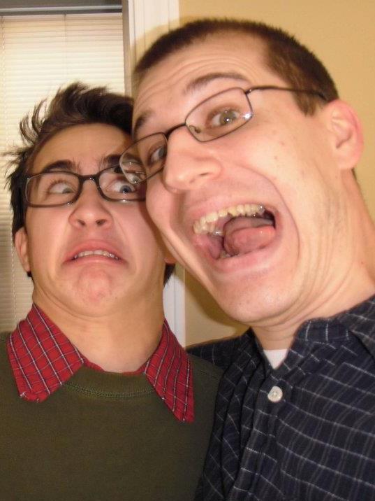 You set your hand on his shoulder, and he smiles even wider.