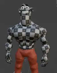 UV mapping looks acceptable and xis skin texture hides it.