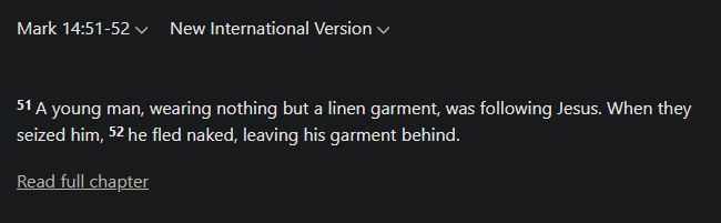 >The "they" in the verse refers to the police, and it's very clear that THEY captured the young man (Jesus' follower), but he escaped naked. I don't see this