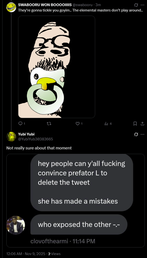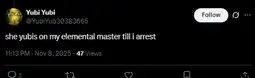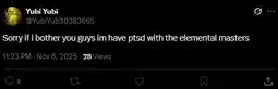 Start spamming βthe elemental masters are coming for youβ on every post yubi makes