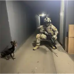 Why is the soldier posing for a photo infront of the retarded inbred dog