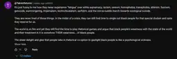 oh… that's not… so its OKAY to take away attention from the genocide in sudan and palestine to talk about wh*te only issues in a c*l*nizer country? Yikes. Wish I could downvote this.