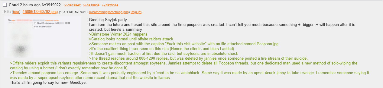 I spammed photos of my poop all over the sharty a few months ago (around june-july 2025).