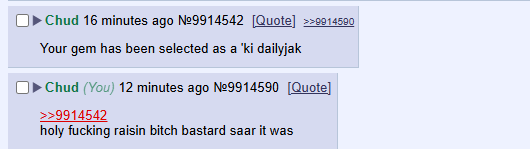 >>14016851now that i remember i also got this one snca get i stole in 4cuck, pretty sure it was 9999999999 in /vt/ i posted the crying yotsuba gif and got banned for like 2 months