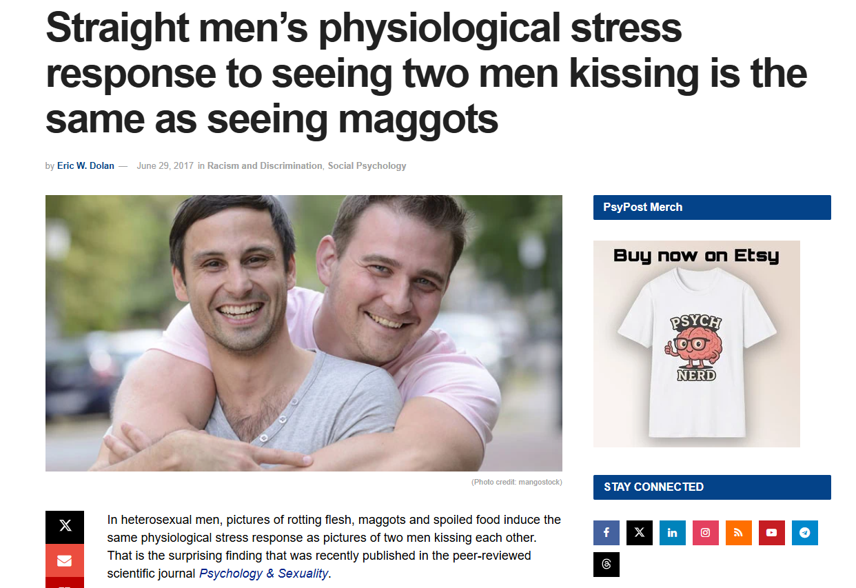 >>14035126Speaking of, actual soyence shows that whenever a heterosexual person sees homosexuals sharing a kiss they have the same response as seeing maggots