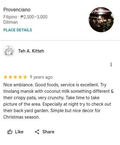>>14059043i was the one who got all of this information, not much else to find since i basically found everything that could've possibly been found. maybe besides this google review in 110 Maginhawa, Diliman, Quezon City, 1101 Kalakhang Maynila, Philippines