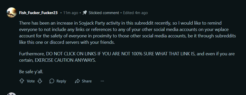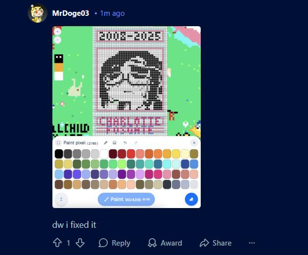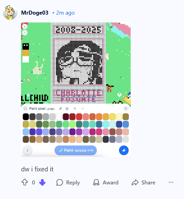 >>14085870Its the same mod from the original wplaceanifa subreddit