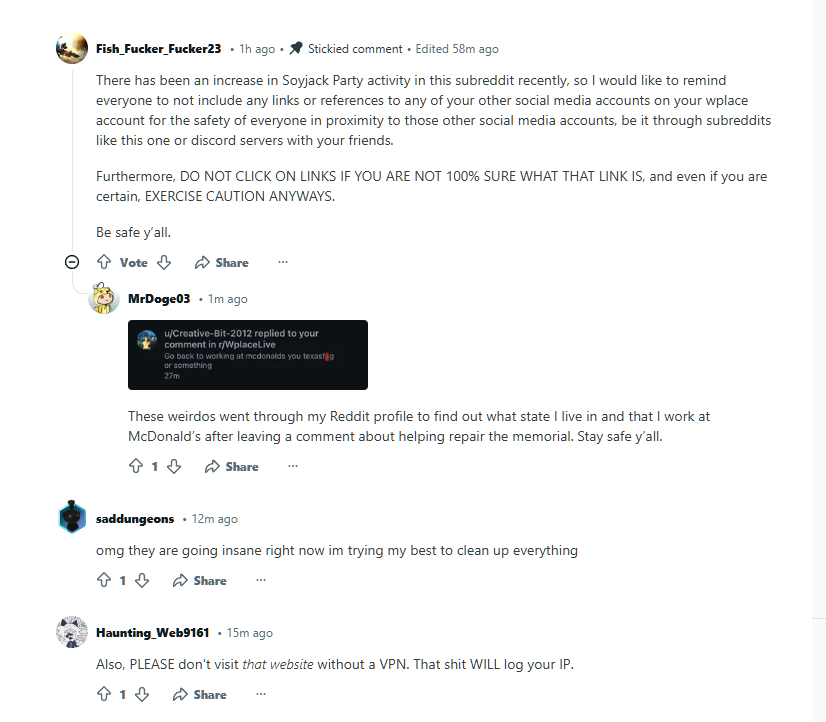 >>14085707i meant the griefing on the wplace art, i shouldve been more specific