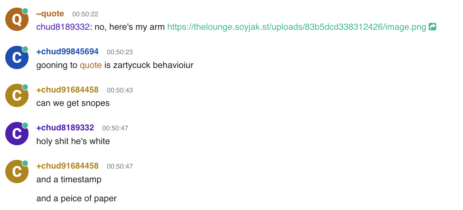 I'm hopping on the IRC right now. Expect this thread to be deleted (and 3 day bans for everyone) in a few minutes
