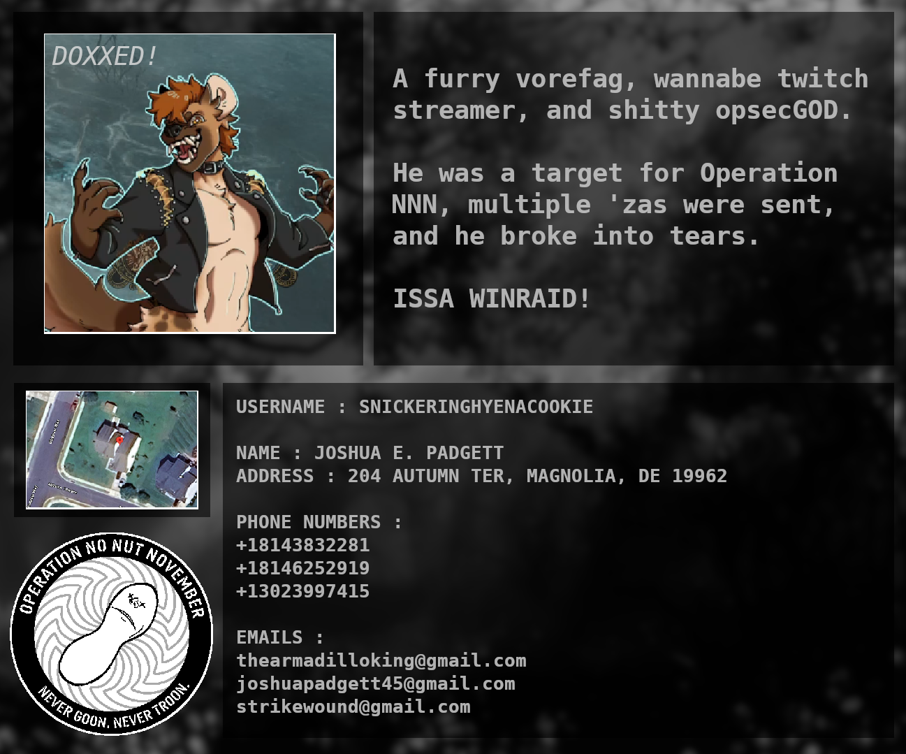 Emails: thearmadilloking@gmail.com, joshuapadgett45@gmail.com, strikewound@gmail.com