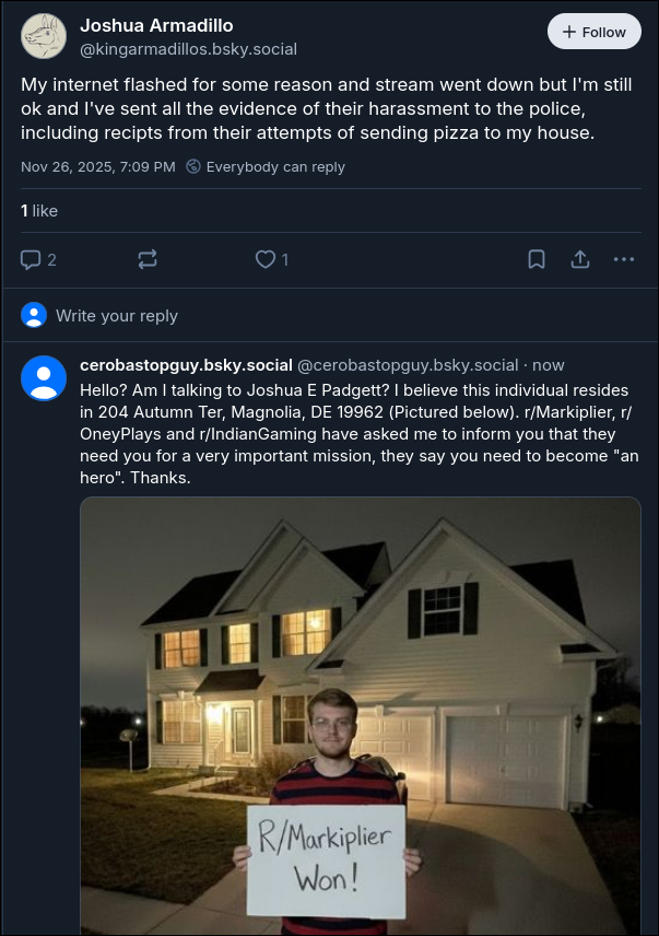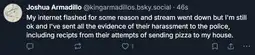 https://bsky.app/profile/kingarmadillos.bsky.social Passwords: Joshua1999, Joshua199, Joshua1, Joshua1999123, Joshua1999d, Joshua19991