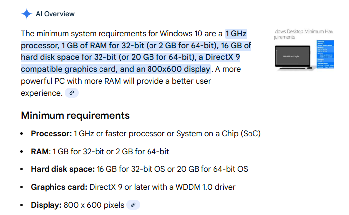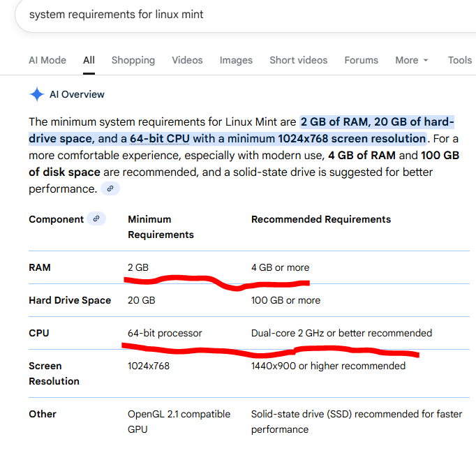 these are old requirements for 2015 windows 10 vs modern linux mint doe