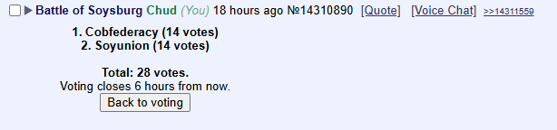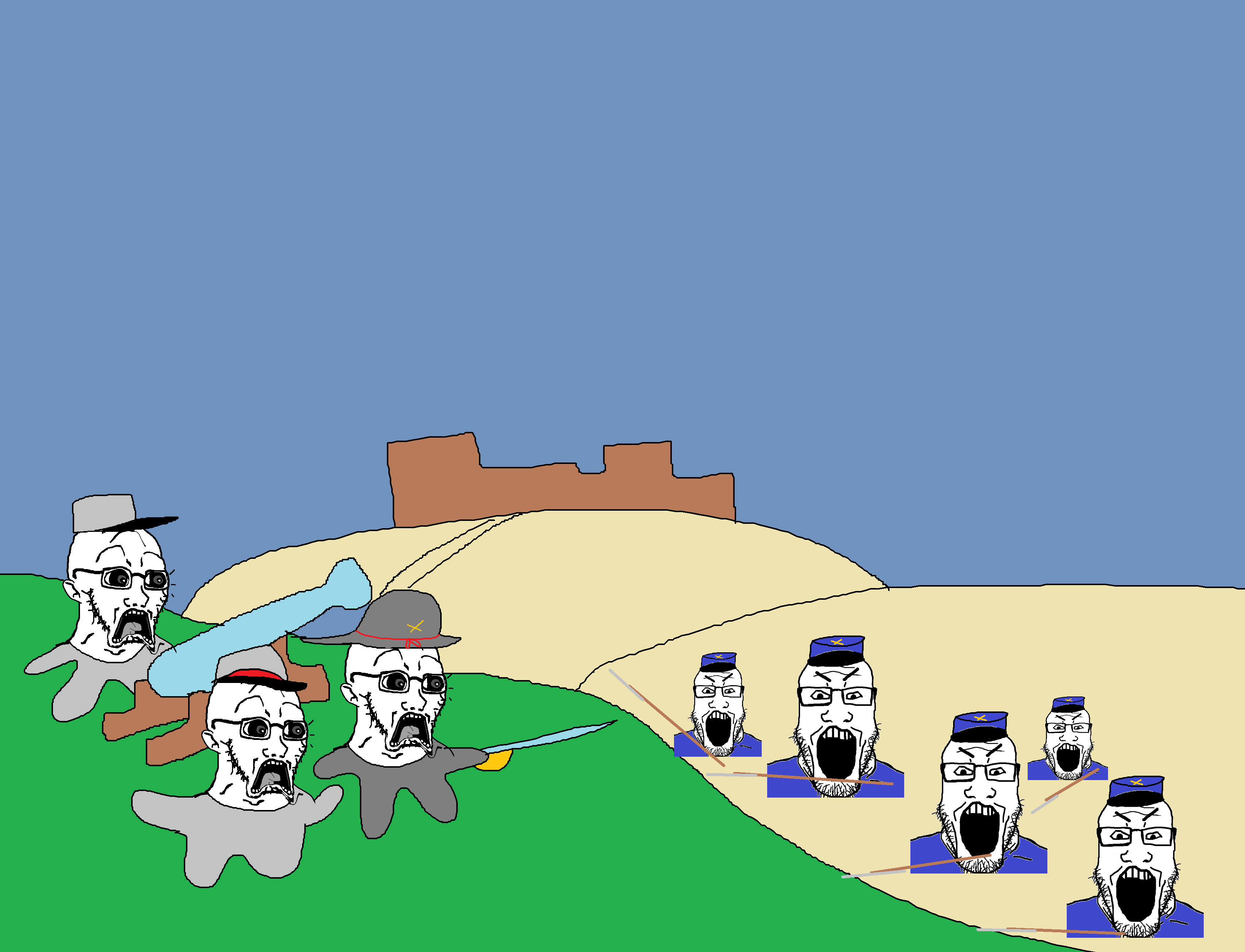>Chudford was right. The Cobfederates did show up in the morning, as he predicted. The first few waves that came to Soysburg were taken by surprised when they started getting planked at by Glownigger's in blue, and what started out as a small skirmish eventually blew into a full-scale battle as the Cobfederates called for reinforcements.