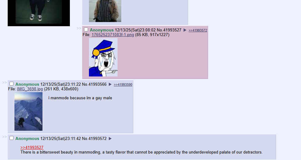>>14409685whenever i see a greentext anywhere besides soyjak party i assume OP is a tranny