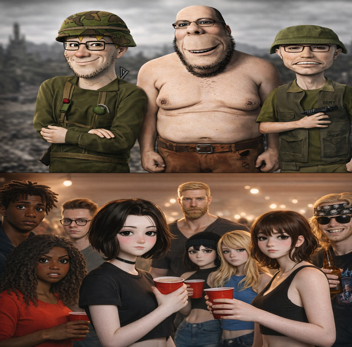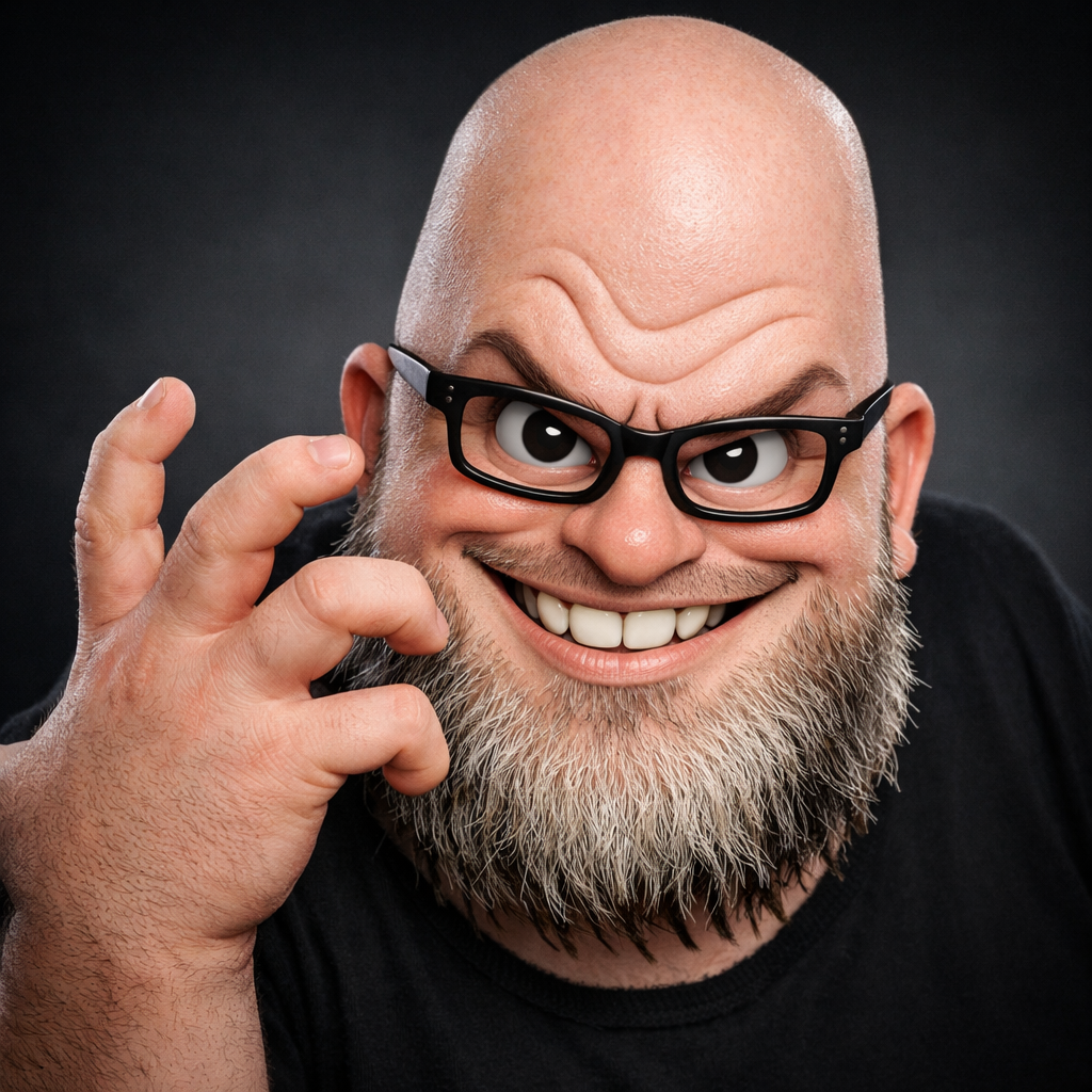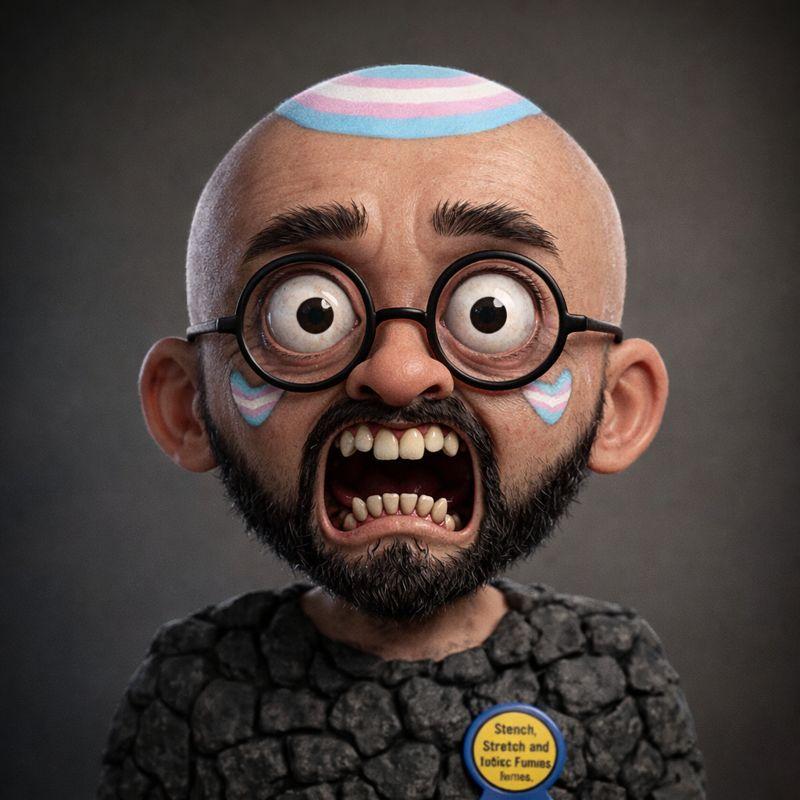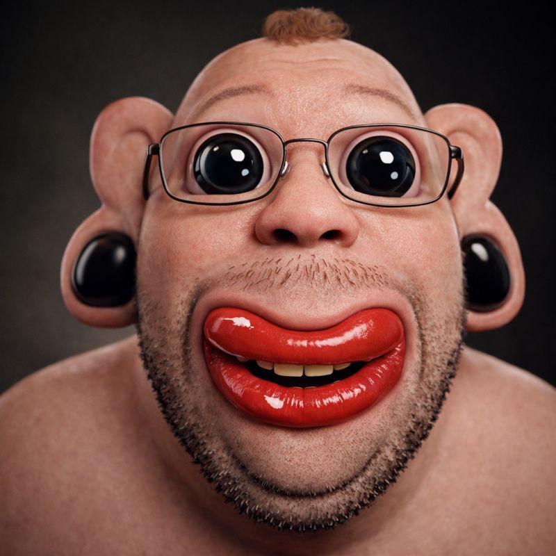ITT we create hyper-realistic uncanny 'jaks. I used this prompt with ChatGPT:>Transform this character into a photorealistic rendering while preserving the original cartoon proportions and facial structure. Keep the oversized head, large eyes, simplified nose, and stylized facial hair exactly as drawn. Add realistic human skin texture, pores, subtle wrinkles, natural lighting, depth of field, and realistic stubble detail. Use high-quality studio lighting, shallow depth of field, and realistic materials, similar to a hyper-real Mario-style render. Do not make the face anatomically realisticβretain the exaggerated cartoon geometry.