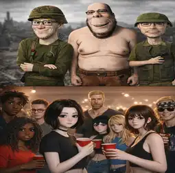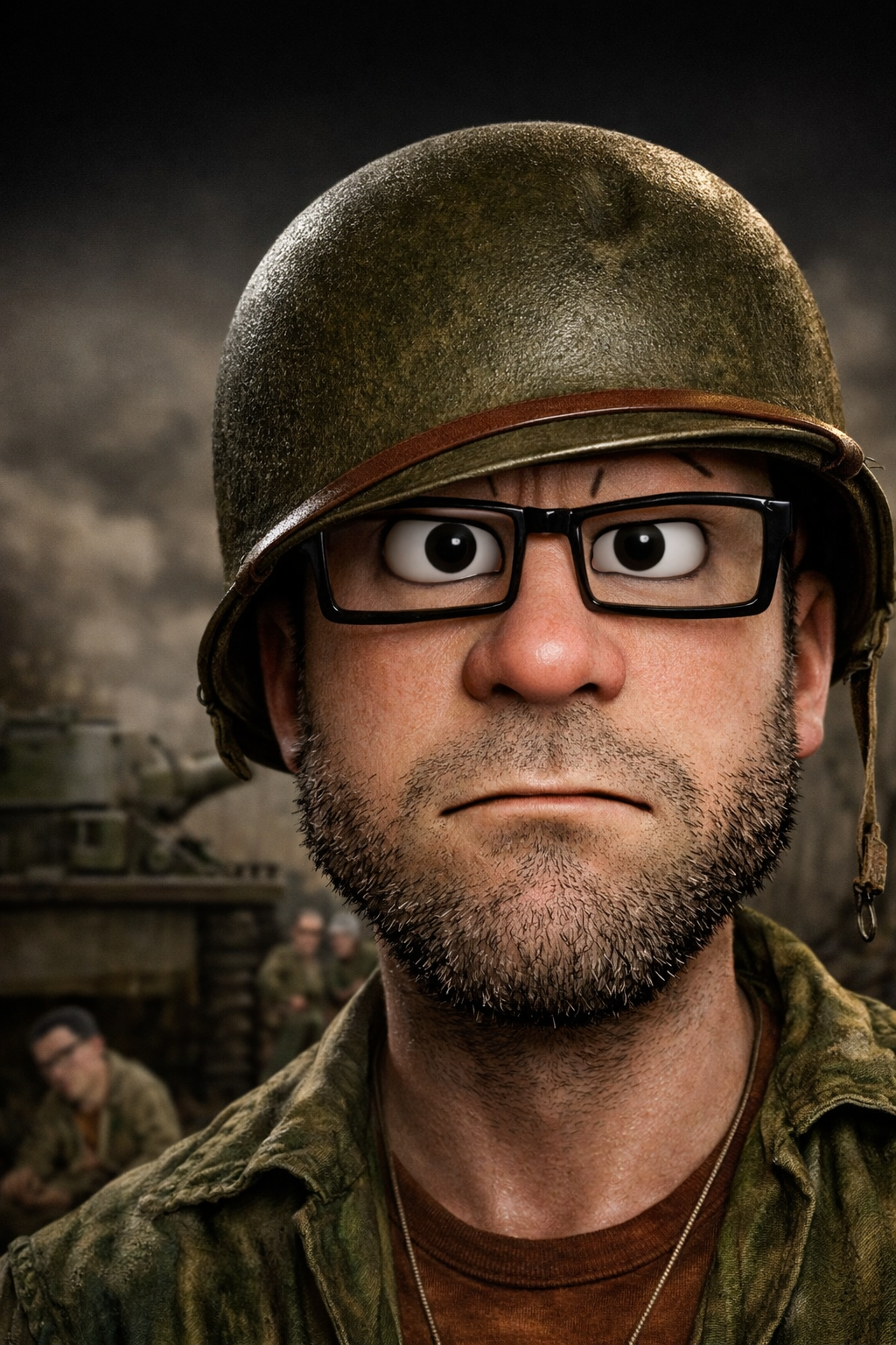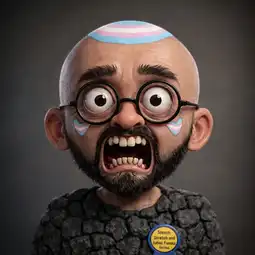 >ITT we create hyper-realistic uncanny 'jaks. >I used this prompt with ChatGPT: >>Transform this character into a photorealistic rendering while preserving the original cartoon proportions and facial structure. Keep the oversized head, large eyes, simplified nose, and stylized facial hair exactly as drawn. Add realistic human skin texture, pores, subtle wrinkles, natural lighting, depth of field, and realistic stubble detail. Use high-quality studio lighting, shallow depth of field, and realistic materials, similar to a hyper-real Mario-style render. Do not make the face anatomically realisticβretain the exaggerated cartoon geometry.