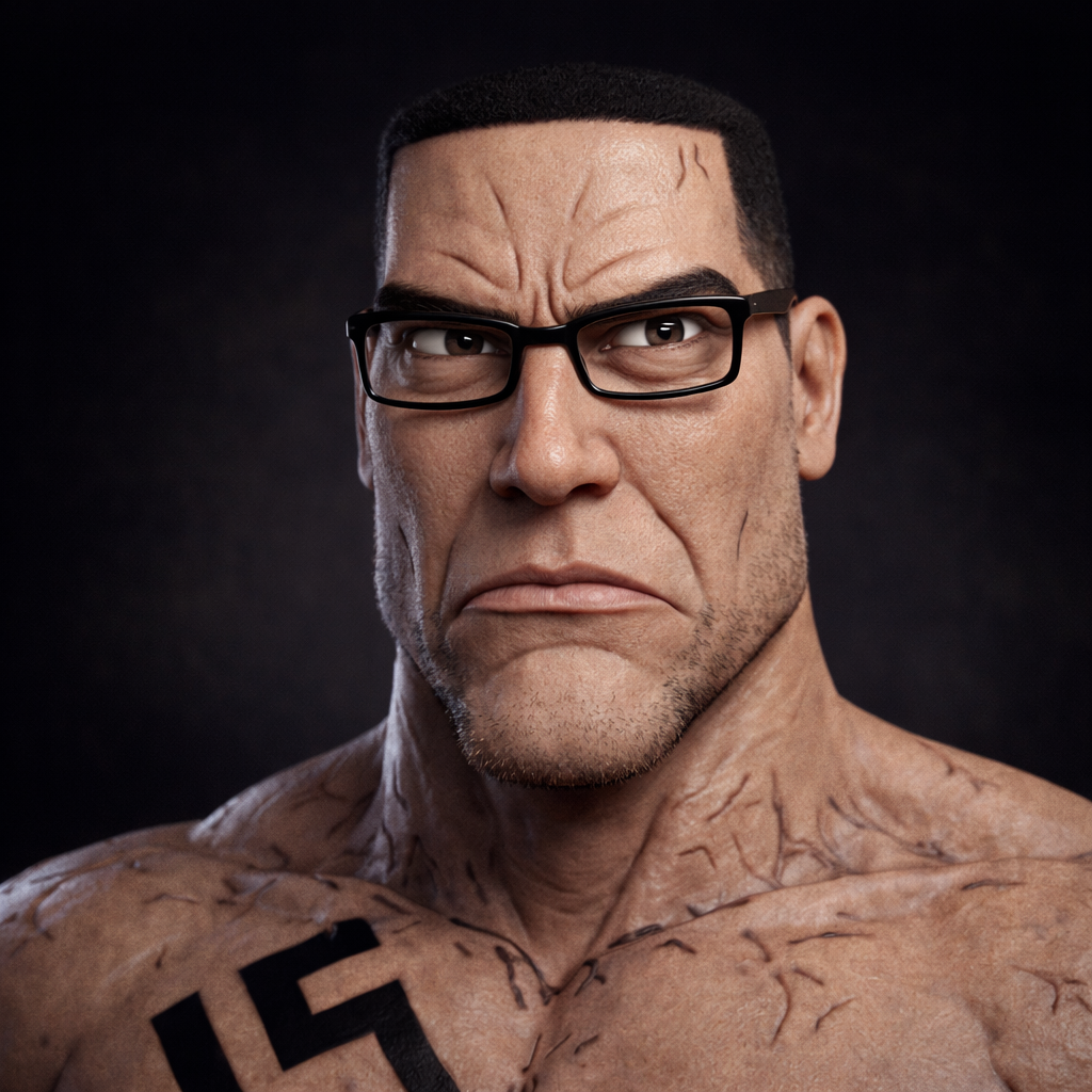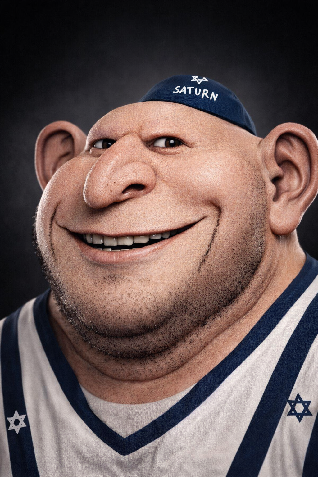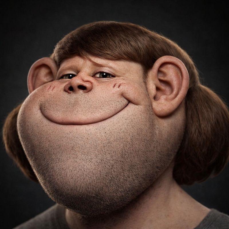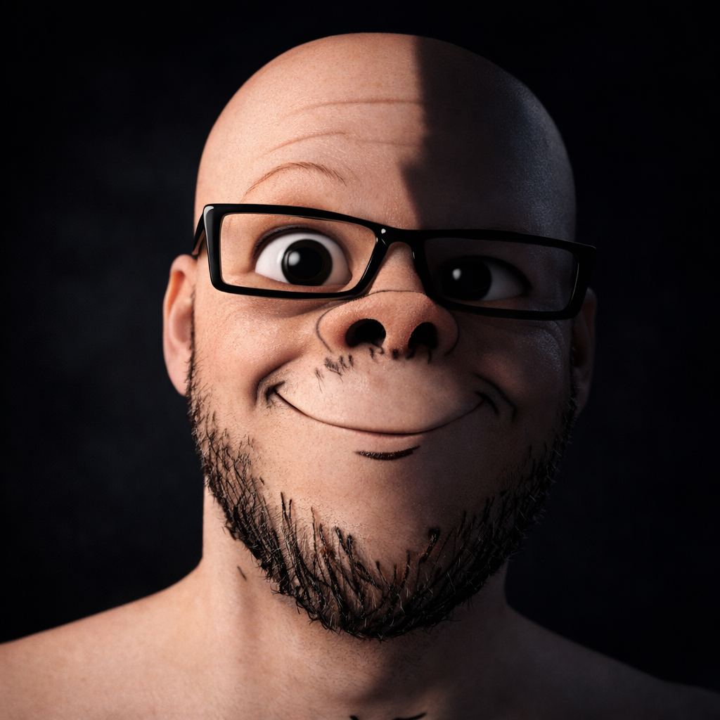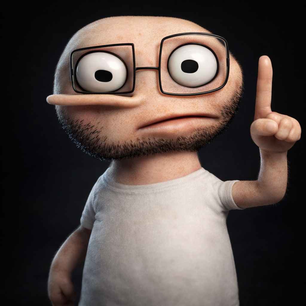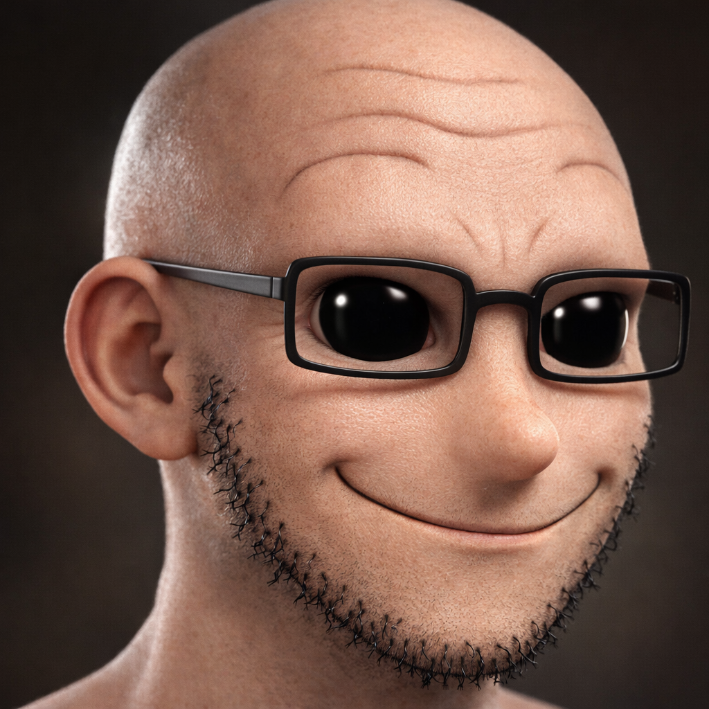 ITT we create hyper-realistic uncanny 'jaks. I used this prompt with ChatGPT:>Transform this character into a photorealistic rendering while preserving the original cartoon proportions and facial structure. Keep the oversized head, large eyes, simplified nose, and stylized facial hair exactly as drawn. Add realistic human skin texture, pores, subtle wrinkles, natural lighting, depth of field, and realistic stubble detail. Use high-quality studio lighting, shallow depth of field, and realistic materials, similar to a hyper-real Mario-style render. Do not make the face anatomically realisticβretain the exaggerated cartoon geometry.