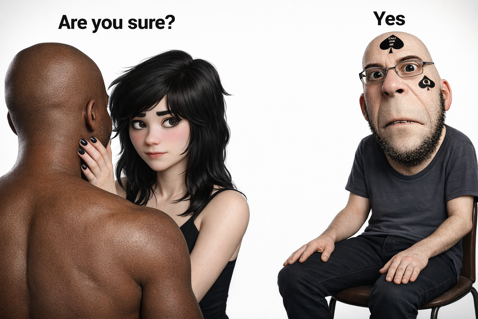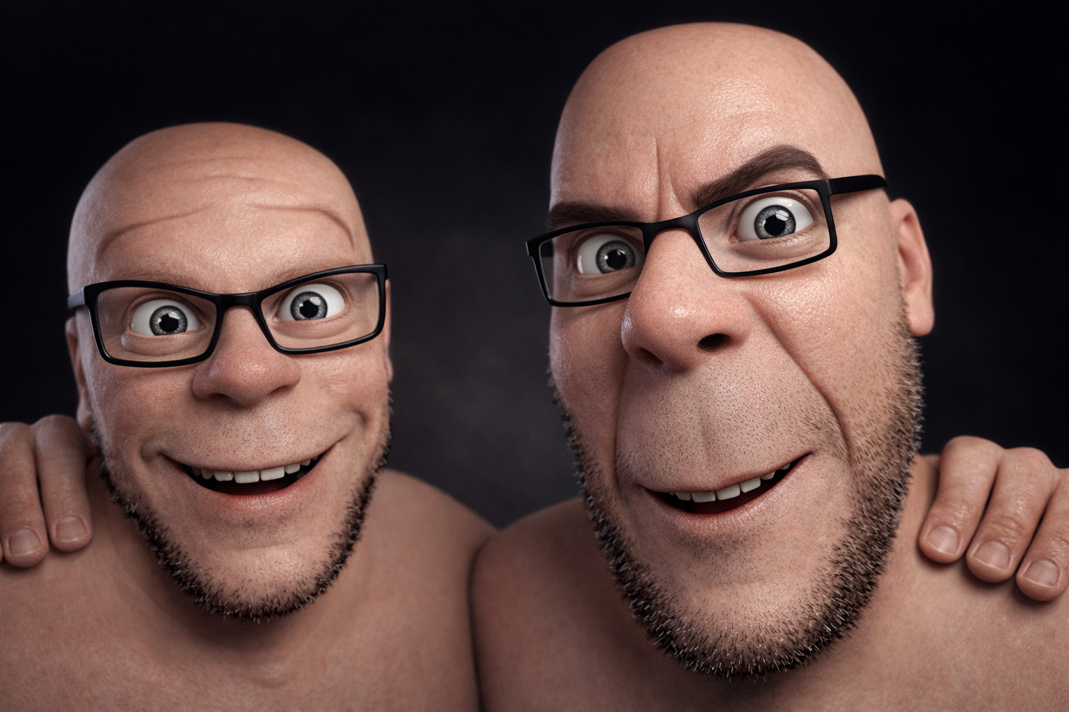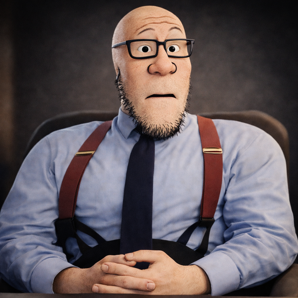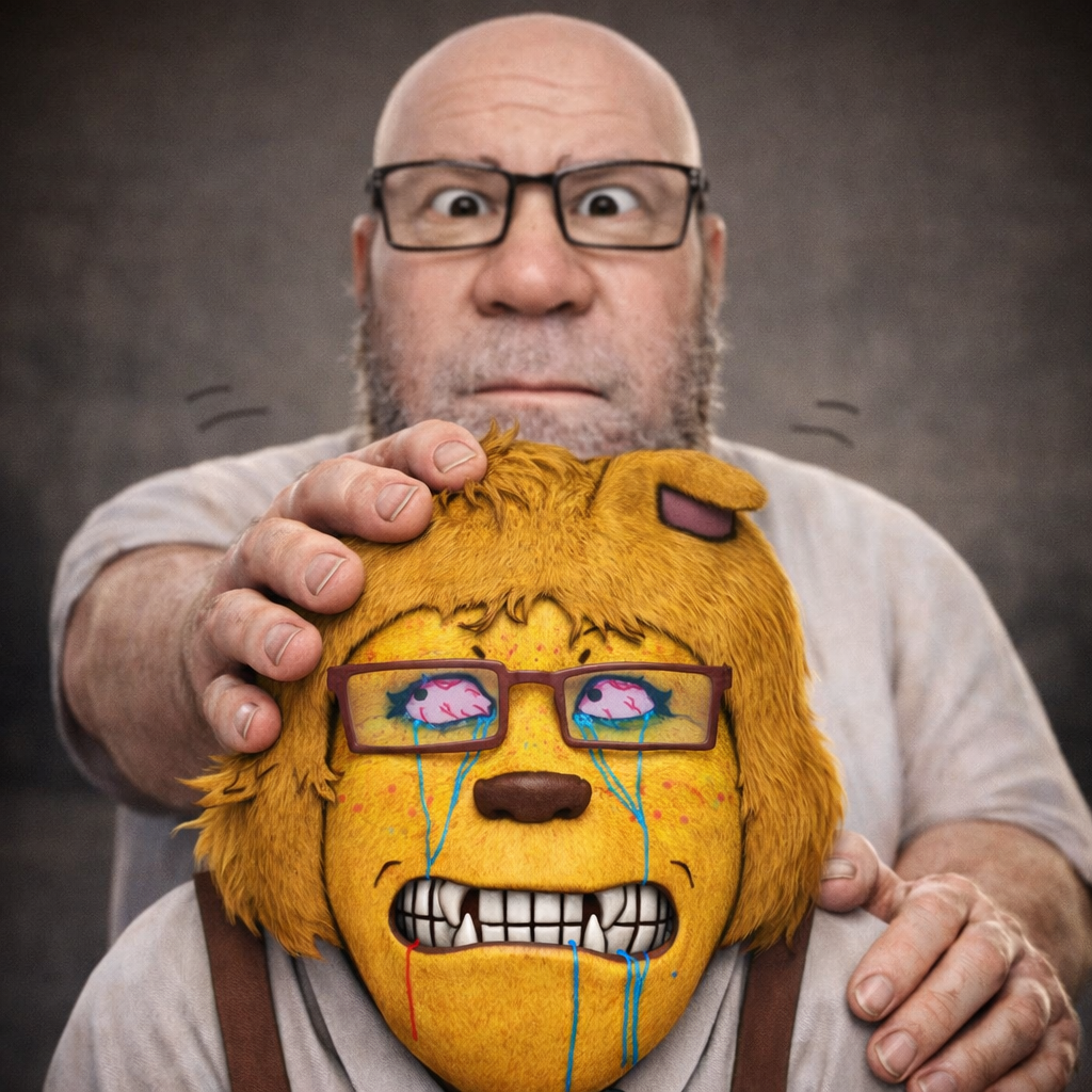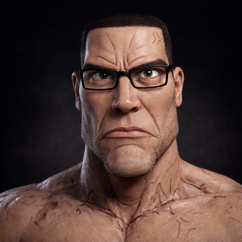 ITT we create hyper-realistic uncanny 'jaks. I used this prompt with ChatGPT:>Transform this character into a photorealistic rendering while preserving the original cartoon proportions and facial structure. Keep the oversized head, large eyes, simplified nose, and stylized facial hair exactly as drawn. Add realistic human skin texture, pores, subtle wrinkles, natural lighting, depth of field, and realistic stubble detail. Use high-quality studio lighting, shallow depth of field, and realistic materials, similar to a hyper-real Mario-style render. Do not make the face anatomically realisticβretain the exaggerated cartoon geometry.