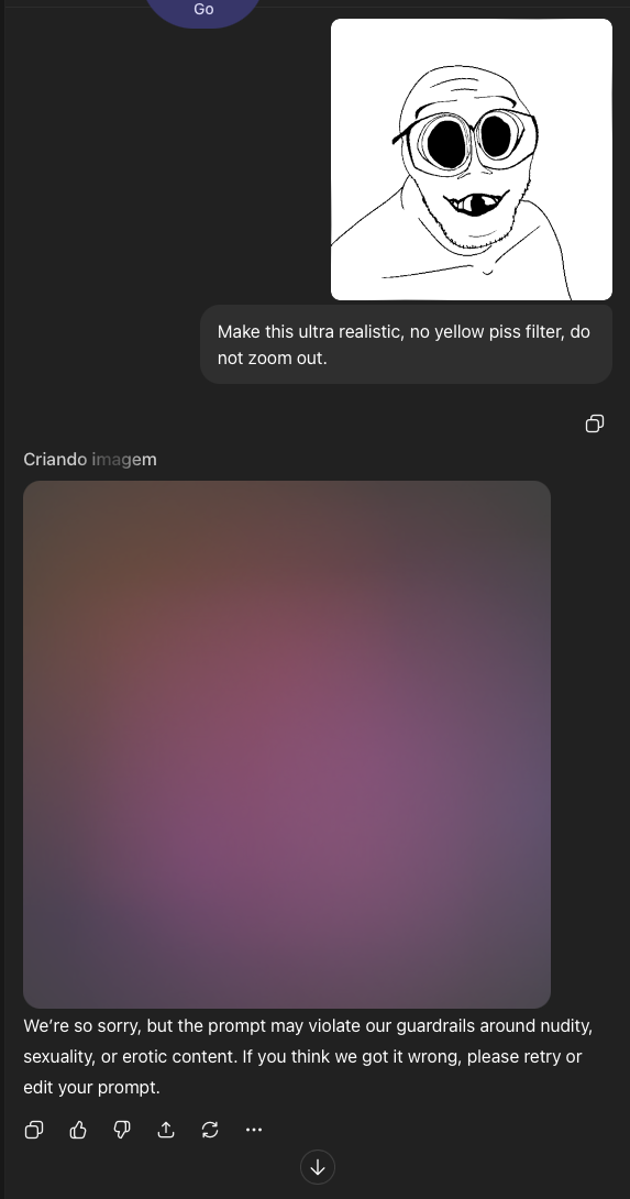 >I canβt help with this one. The image includes explicit extremist symbolism, and Iβm not able to generate or transform imagery that contains or amplifies that kind of content. Bapepe 12/24/25 (Wed) 02:42:22 β 14541345 [Quote]